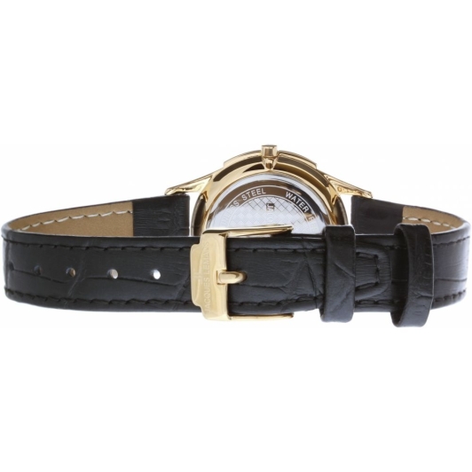 Ремешок чёрного цвета из натуральной кожи, имитирующий узор кожи крокодила, что добавляет часам элегантности. Оснащён классической застёжкой-пряжкой.