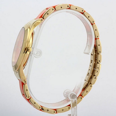 Корпус часов выполнен из высококачественной нержавеющей стали, гарантирующей долговечность и устойчивость к коррозии. Частичное PVD-покрытие цвета розового золота добавляет часам нотку элегантности и женственности, создавая теплый и притягательный образ.