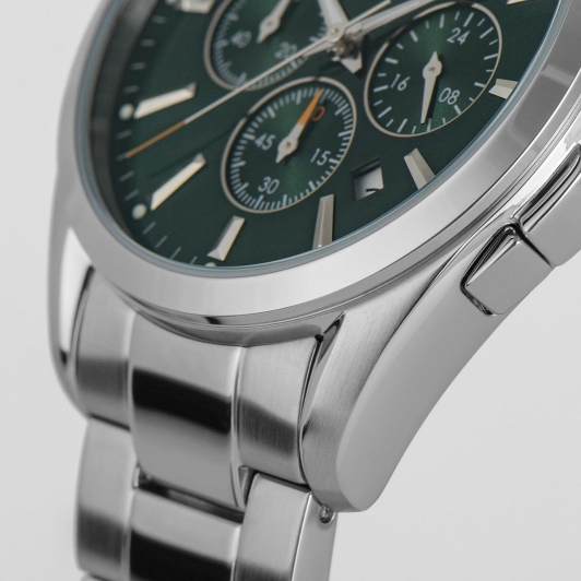 Зеленый циферблат - это смелый и выразительный акцент, который притягивает взгляды. Четкие стрелки и метки обеспечивают отличную читаемость времени. Минеральное стекло обеспечивает превосходную защиту циферблата от царапин и ударов, сохраняя его первозданный вид на долгие годы.