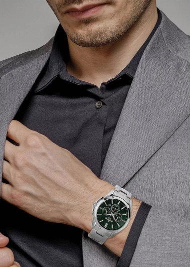 Корпус и браслет часов, изготовленные из нержавеющей стали, обеспечивают исключительную прочность и долговечность. Этот материал выдерживает испытания временем, сохраняя свой элегантный внешний вид. Цельный браслет из нержавеющей стали комфортно облегает запястье, обеспечивая надежную и удобную посадку.