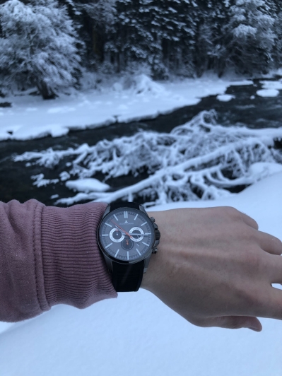 Элегантный черный циферблат с яркими красными стрелками создает эффектный контраст и обеспечивает отличную читаемость времени. Красные стрелки придают часам спортивный и динамичный вид.