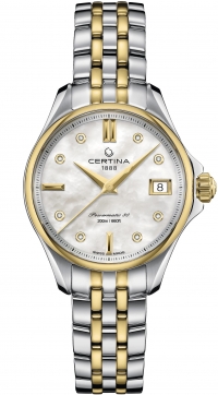 Эти часы – образец универсальности. Круглый корпус из нержавеющей стали заключает в себе всю мощь современного швейцарского часового искусства. Дизайн использует классические элементы, фасетированные стрелки, циферблат с перламутровой отделкой в сочетании с современной цветовой комбинацией: полированная нержавеющая сталь с акцентами цвета желтого золота. Плотно прилегающий металлический браслет с пятью рядами звеньев, застежкой-бабочкой и кнопками комфортно и стильно обхватывает запястье.