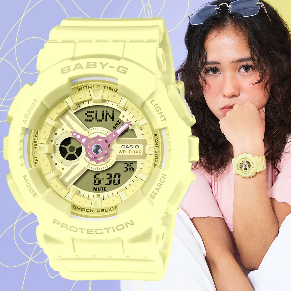 Японские кварцевые часы Casio Baby-G BA-110AH-9A - Очень воздушная и "теплая" модель, которая может стать вашим ежедневным аксессуаром, гармонично дополняя собой практически любой образ.