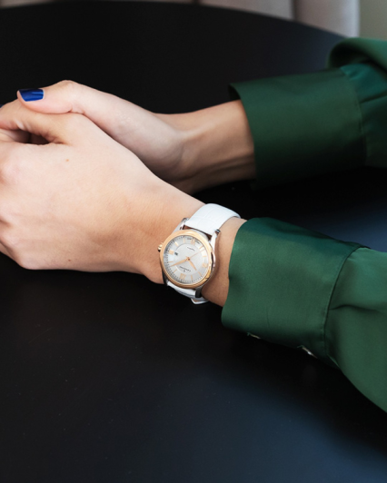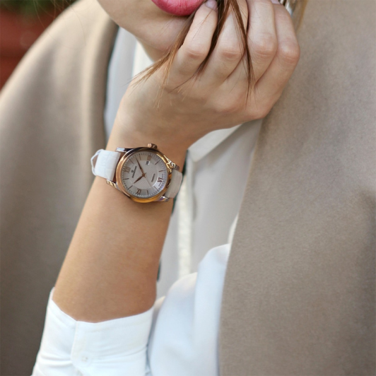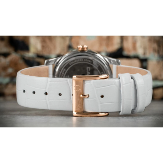 - белый кожаный ремешок с узором «под аллигатора»;