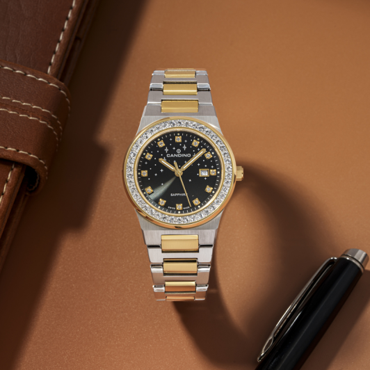 Модель Candino C4750/4 имеет уникальный градиентный циферблат в сочетании с очаровательными элегантными часовыми и минутными стрелками и часовыми метками, инкрустированными камнями, что создает роскошный и привлекающий внимание общий вид.