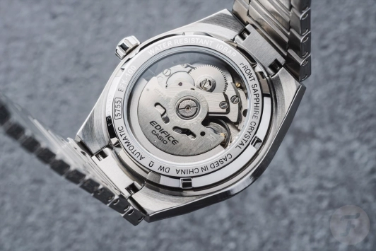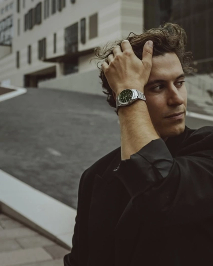 Притягивающий взгляд зеленый циферблат создает неповторимый образ, играя оттенками и добавляя изысканности. Прозрачная задняя крышка корпуса позволяет наслаждаться красотой работающего механизма, демонстрируя сложность и утонченность часового искусства. Окошко даты обеспечивает удобное отображение текущей даты. Сапфировое стекло, устойчивое к царапинам, гарантирует безупречный вид циферблата.