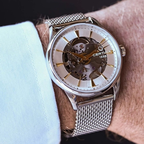Швейцарские механические наручные мужские часы с автоподзаводом Certina DS-1 Skeleton C029.907.11.031.00 сочетают в себе эстетику минимализма классической модели Certina DS-1 с элегантным и интригующим дизайном скелетонированного циферблата.