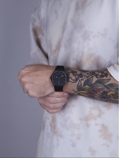 - Циферблат с метками в виде штрихов защищен прочным сапфировым стеклом;