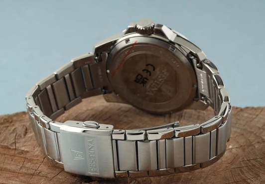 - часы оснащены стальным браслетом на раскладной застёжке с кнопками;
