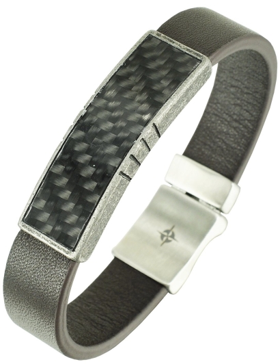 В центре браслета расположена вставка с текстурой под карбоновое волокно. Этот материал, широко используемый в автоспорте и авиации, символизирует скорость, прочность и передовые технологии. Текстура "карбона" придает браслету современный и динамичный вид, делая его отличным выбором для мужчин, следящих за последними тенденциями.