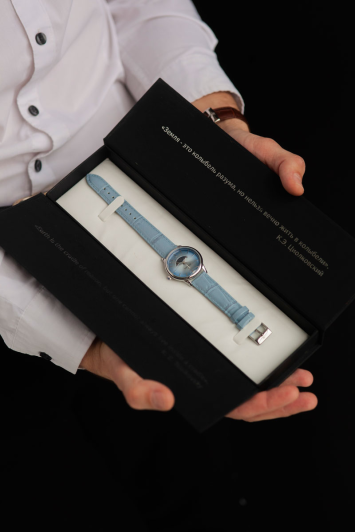 - на задней крышке часов выгравирован фантазийный сюжет – космическая станция будущего;