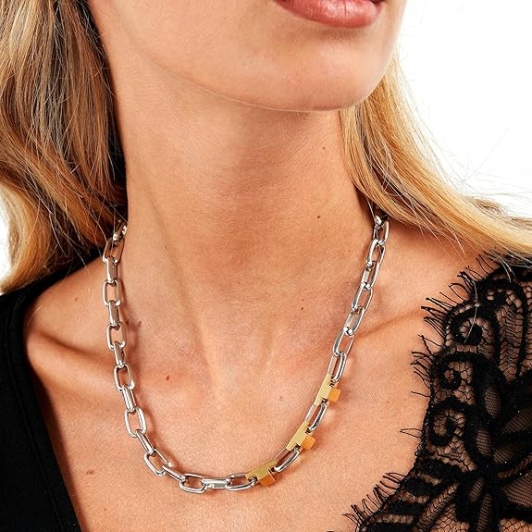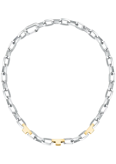 Выполненное из высококачественной нержавеющей стали, колье отличается прочностью и долговечностью. Частичное IP-покрытие цвета желтого золота придает изделию благородный блеск и изысканность, добавляя акцент роскоши.