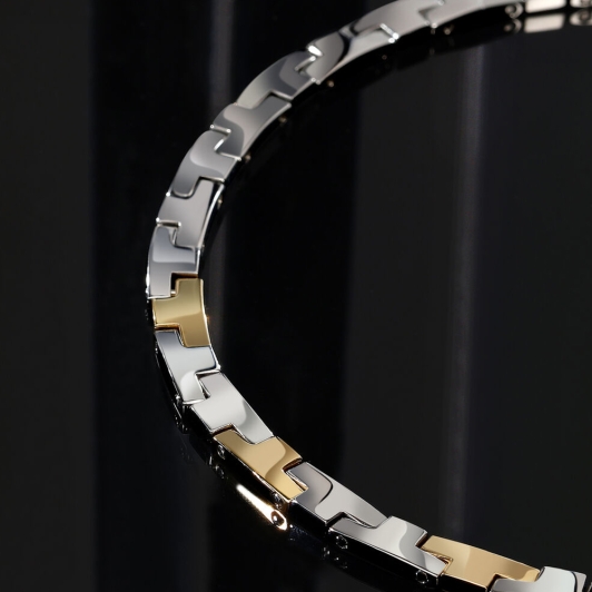 Изготовленное из высококачественной нержавеющей стали, это колье обладает исключительной прочностью и долговечностью. Частичное IP-покрытие цвета желтого золота добавляет роскошный блеск, создавая гармоничный контраст с металлом. Этот дизайнерский прием придает украшению особую изысканность, делая его подходящим как для повседневного, так и для вечернего образа. Универсальный размер 40+2 см позволяет регулировать длину колье, подстраивая его под ваш индивидуальный стиль и вырез одежды.