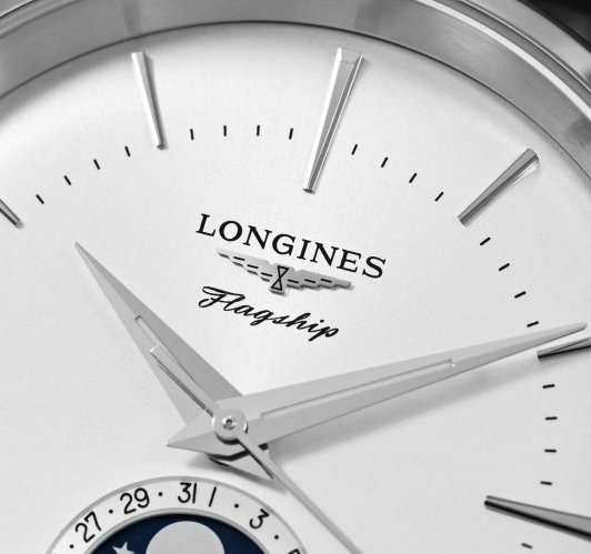 - эксклюзивный механизм Longines с частотой 25200 полуколебаний в час и монокристаллической кремниевой спиралью баланса;